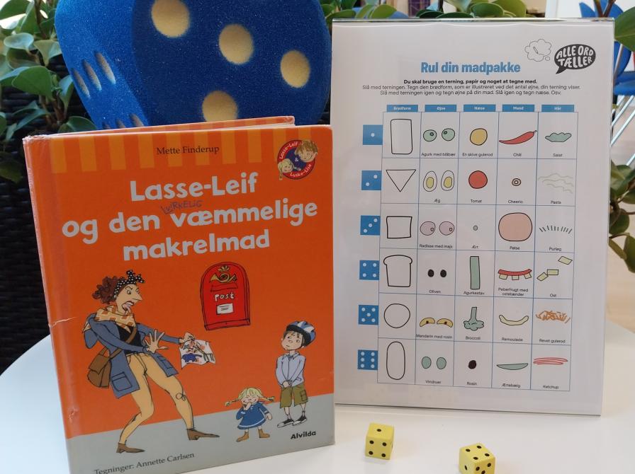 Til slut skal vi prøve at rulle med terningerne og se, hvilke sjove madder til madpakken vi selv kan tegne!
