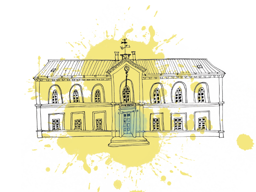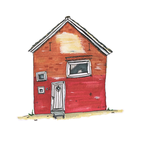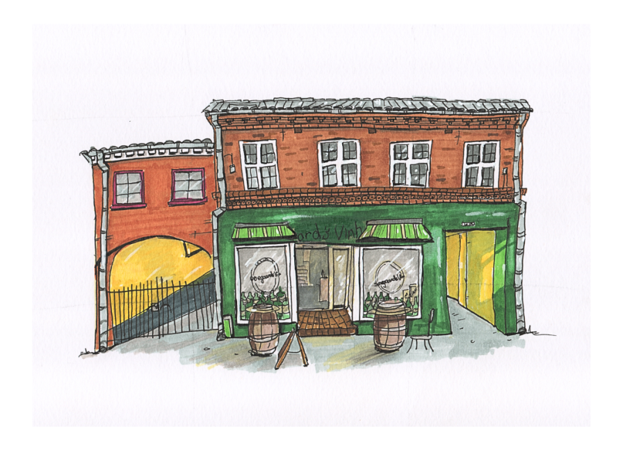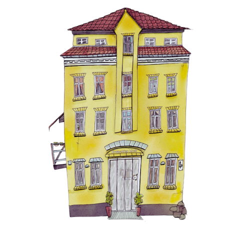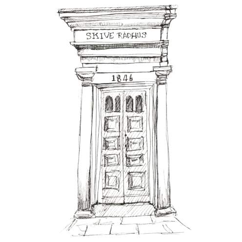 Disse øjeblikke voksede til skitser og tegninger, hvor Emma‑Jane indfanger byens arkitektur, den foranderlige bymidte, det gamle rådhus og de gader og huse, som rummer generationers minder.