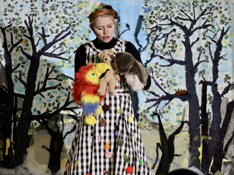 Eventyrværkstedet inviterer til en magisk rejse, hvor vi synger, danser og hopper gennem skovens eventyr sammen med hånddukkerne Tulle og Skralle.